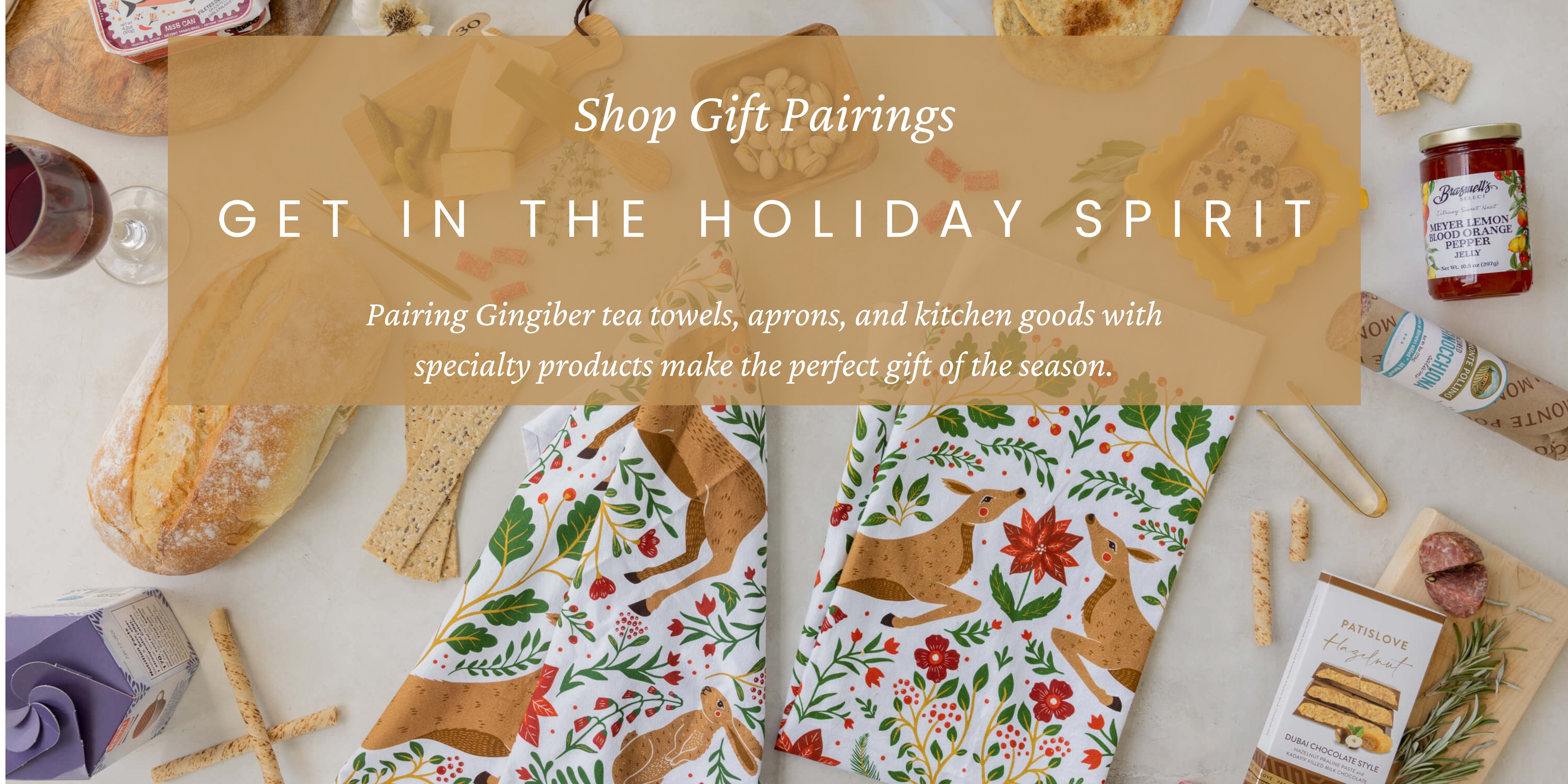 Baking tasty treats for your loved ones while wrapped in one of our new Gingiber aprons is the perfect way to spend the day!