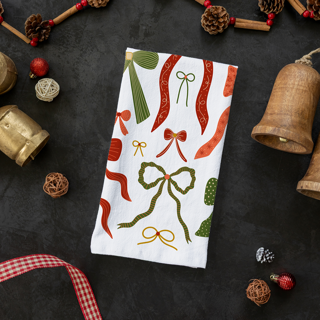 Whether you’re hosting holiday gatherings or simply adding festive cheer to your home, you need décor that’s both beautiful and practical. Our Bows Tea Towel isn’t just pretty—it’s the perfect touch for your holiday kitchen. Made from premium cotton flour sack material, this towel is breathable, lint-free, and absorbent, making it as functional as it is decorative. Hang it on your oven door, drape it over a breadbasket, or use it as part of a festive table display. Wherever it goes, it adds a pop of holiday color and charm.