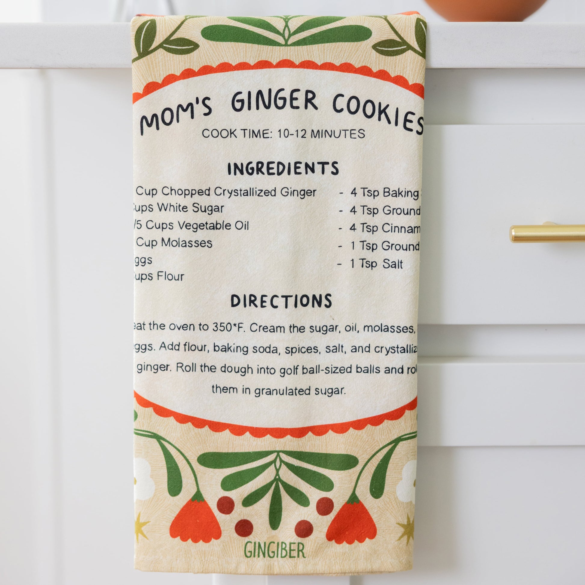 Ginger Cookies Recipe Tea Towel